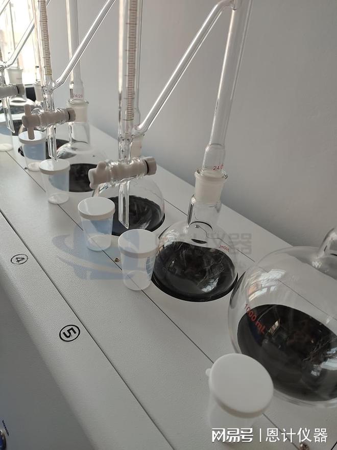 准确称量一定量的原油样品,与适量脱水溶剂(如甲苯、二甲苯)混合后,放入蒸馏烧瓶中,置于对应的样品加热位;